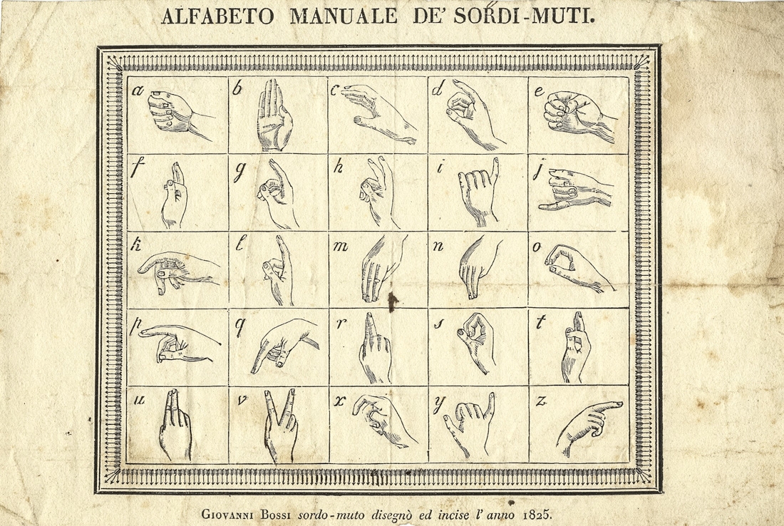 Alfabeto Manuale de' Sordi-Muti.Giovanni Bossi 1825.Documento a stampa (mm...