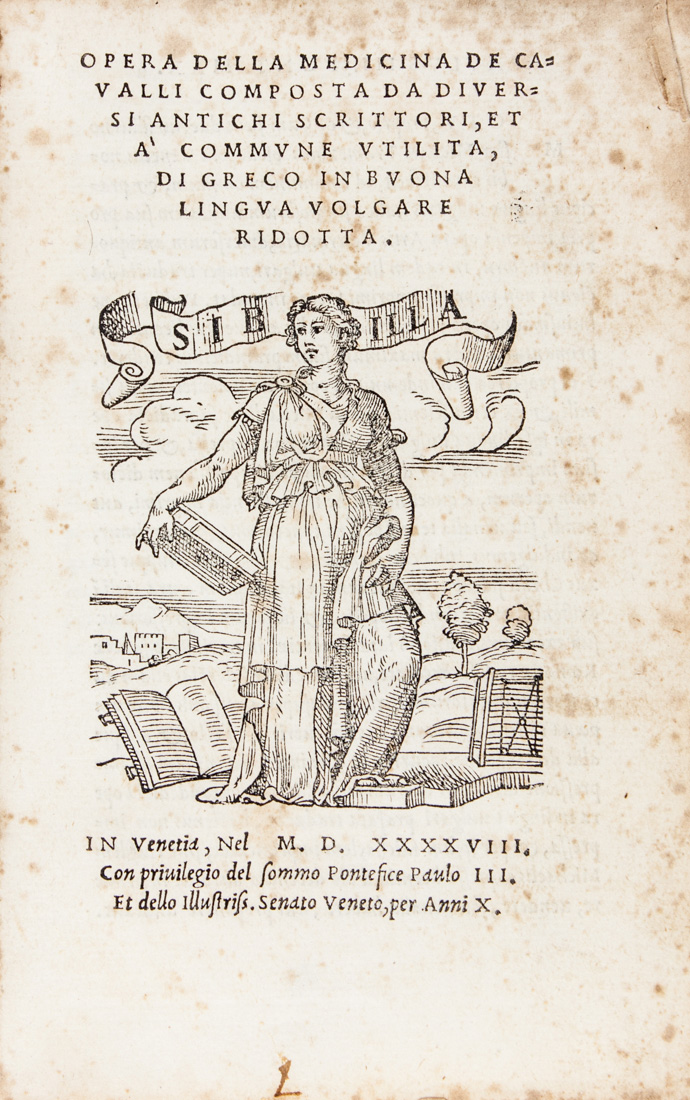 Opera della medicina de cavalli composta da diversi antichi scrittori, et a' commune utilita, di greco in buona lingua volgare ridotta
