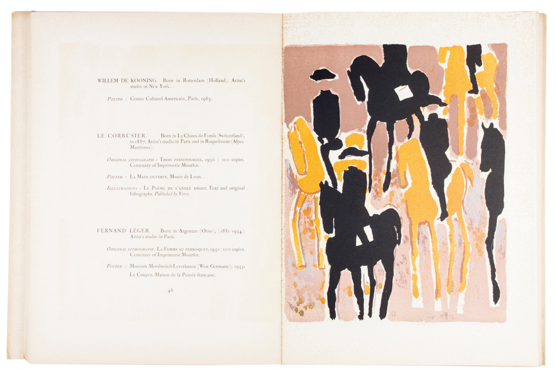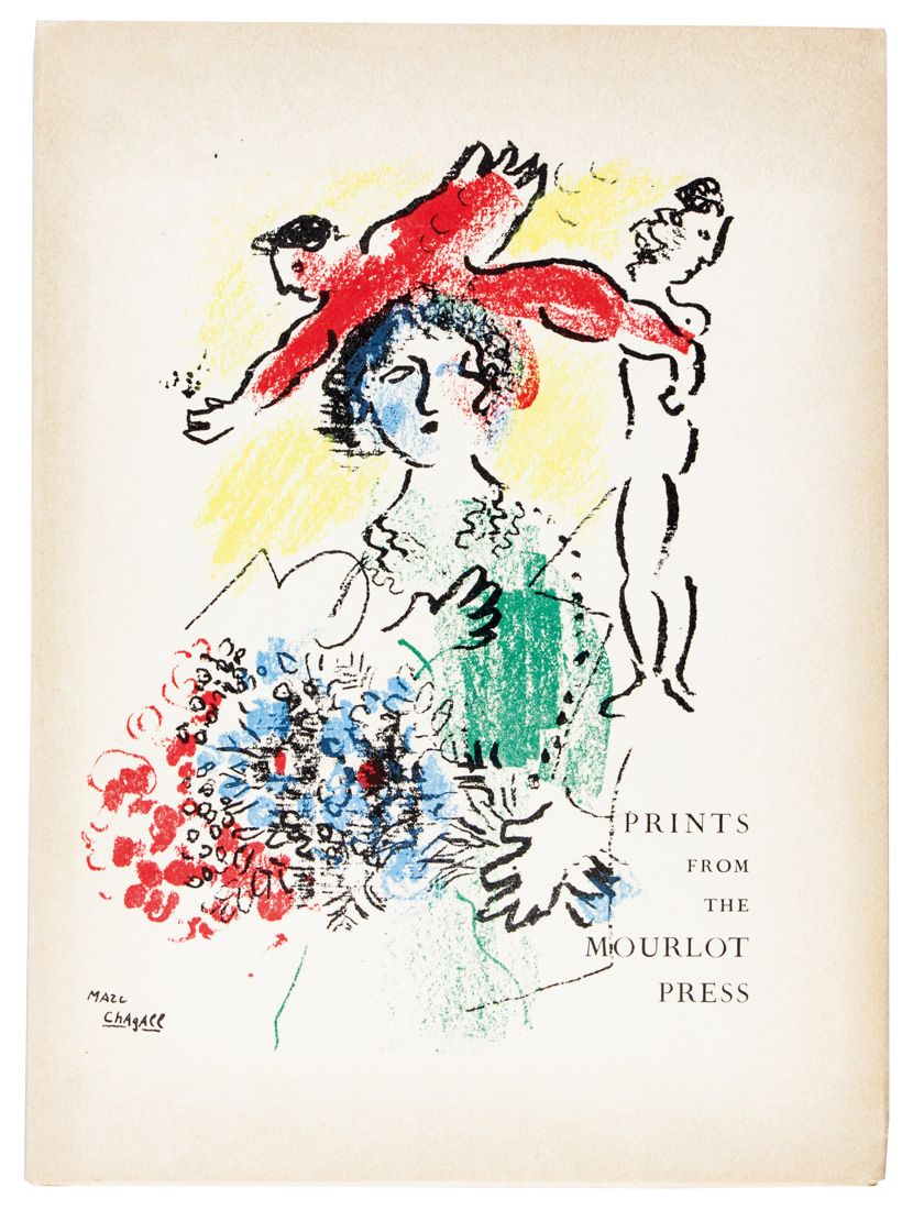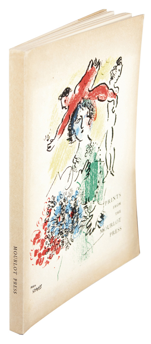 In-4°(mm 295x201). Pagine 78 con 18 litografie originali di Chagall, Picasso, Miró, Braque, Matisse, Cocteau, Calder, Giacometti e altri perlopiù a piena pagina nel testo, di cui 16 a colori, e 4 riproduzioni. Esemplare n. 185, uno dei 200 su vélin de Rives riservati agli artisti, allo staff e agli amici di Mourlot, su una tiratura complessiva di 2200 copie. Ottima conservazione. Brossura editoriale bianca e sovraccoperta illustrata con una litografia originale di Chagall, leggermente ingiallita. Dedica autografa di Mourlot manoscritta a matita al secondo foglio bianco.