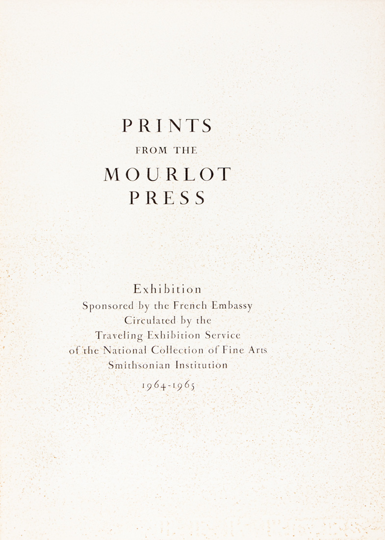 Prints from the Mourlot Press. Exhibition sponsored by the French Embassy. Circulated by the traveling exhibition service of the National Collection of Fine Arts Smithsonian Institution 1964-1965.