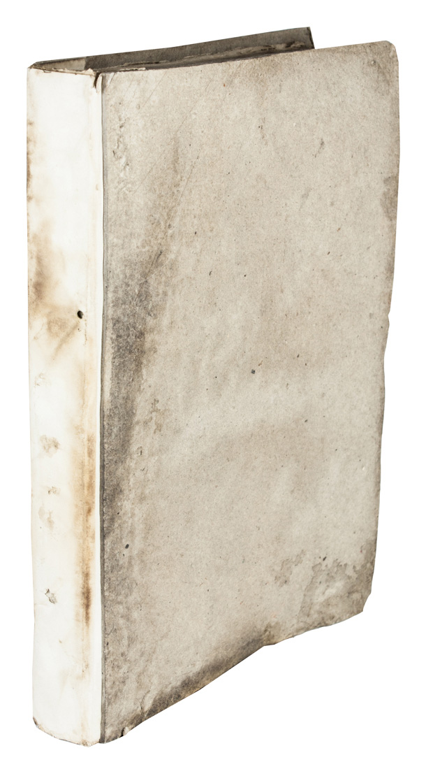 In-folio (mm 298x208). Carte [4], 192 [i.e.190 per salto nella numerazione]. Frontespizio entro bella cornice xilografica e capilettera incisi in legno. Esemplare alluvionato, con residui di fango e inoltre con frontespizio e prime carte in parte brunite, lavori di tarlo marginali e altre mende. Legatura coeva in pergamena con piatti originali sostituiti da cartone rigido settecentesco. Alcune glosse di antica mano al testo.