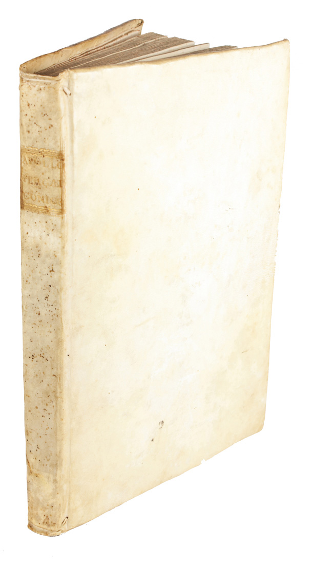2 parti in 1 volume in-folio (mm 294x195). Pagine [8], 260; [4], 76. Testatine, finalini e capilettera xilografici interni al testo, oltre a incisioni in legno lungo le pagine. Frontespizio della prima parte rimontato con pecetta, alcune leggere fioriture lungo le carte e bruniture alle ultime pagine. Complessivamente ottimo esemplare. Legatura settecentesca in piena pergamena rigida con titolo in oro su tassello al dorso. Tagli spruzzati.