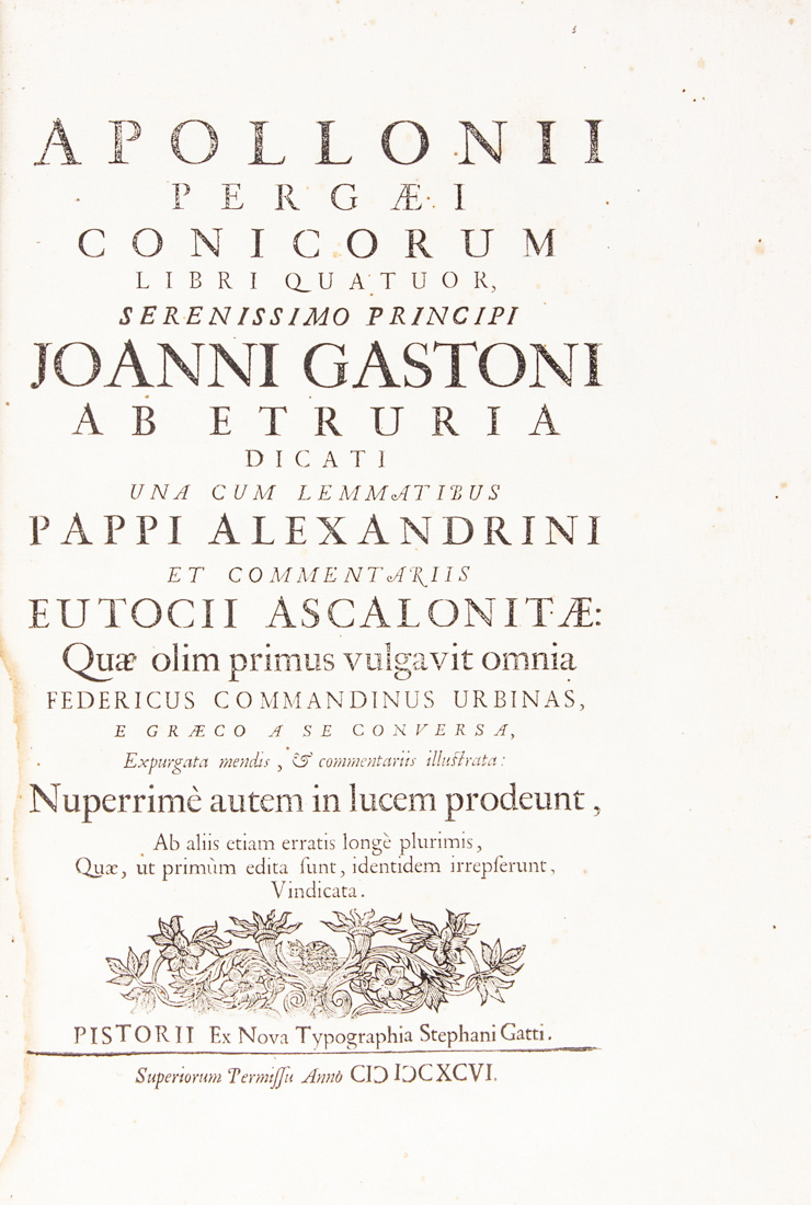 Apollonius Pergaeus, Conicorum libri quatuor…Pistorii: ex nova typographia...