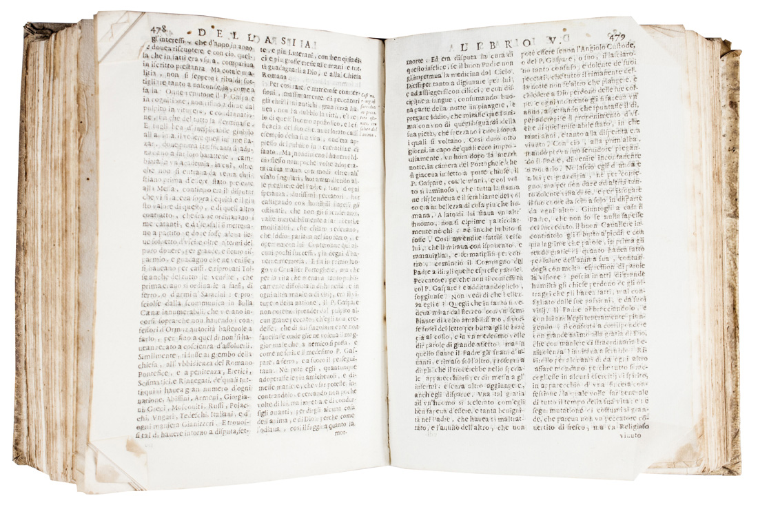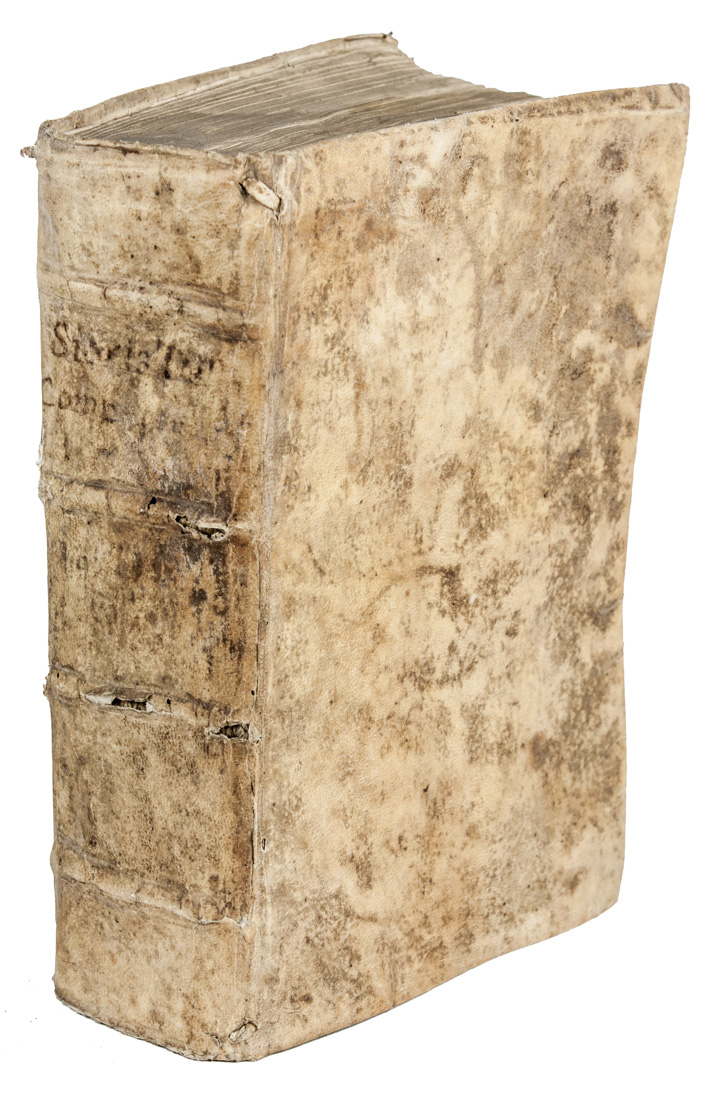 In-4° (mm 206x150). Pagine [8], 894, [10] con 1 antiporta allegorica incisa in rame da Bloemaert. Esemplare un po' allentato internamente, con gore d'acqua lavabili e forellini di tarlo perlopiù marginali, antiporta presente ma con un'ampia lacuna. legatura coeva in pergamena rigida con titoli manoscritti al dorso, un poco lisa.