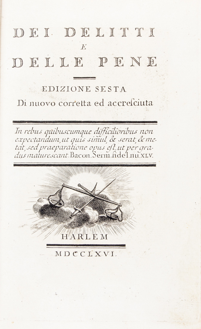 Beccaria Cesare, Dei delitti e delle pene. Edizione sesta, di nuovo corretta e accresciuta.