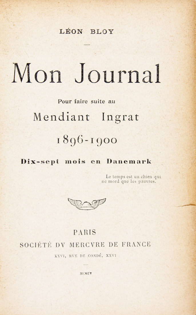 Bloy Léon, Mon Journal pour faire suite au Mendiant Ingrat 1896-1900,...