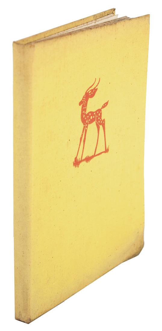 In-4° (mm 215x140). Pagine 97, [1] e 10 fotografie fuori testo. Esemplare parzialmente intonso con piccole vignette incise in legno. Al verso della prima carta mappa xilografica che illustra l'itinerario seguito dall'Autore. Lievissime fioriture altrimenti buono stato. Legatura coeva in tela gialla con cerbiatto impresso al piatto anteriore. Punte stanche e qualche macchia. Firma autografa in principio.