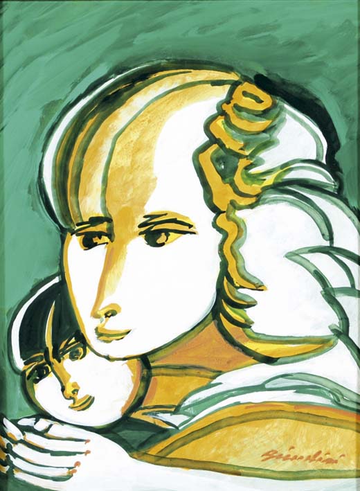 BRINDISI REMO Roma 1918 - Lido di Spina 1996 Maternità 1981 tempera su cartoncino Misure: 39,8x29,9 firma in basso a destra autentica dell'Archivio Remo Brindisi a cura della Galleria Pace Milano nr. Arch. A1746 su foto e su etichetta al retro