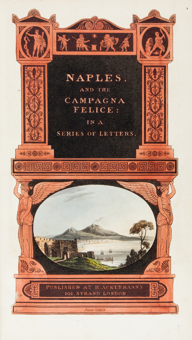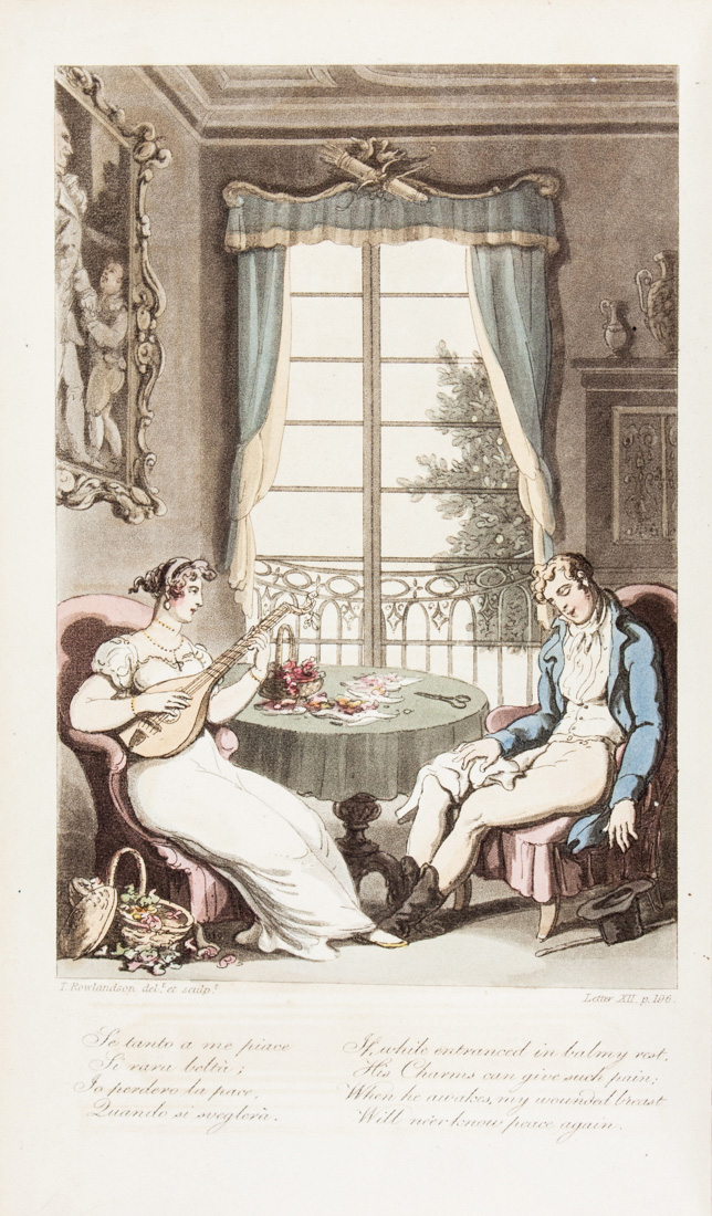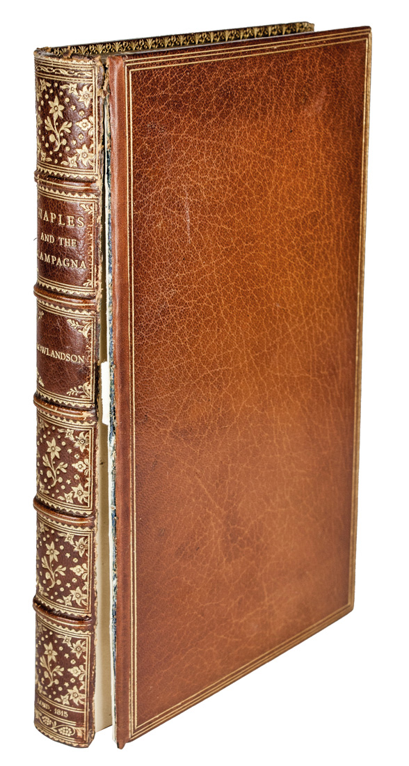In-8° (mm 235x145). Pagine [4], 400, [12], l'ultima bianca. Con un'antiporta e un frontespizio figurati, 1 mappa più volte ripiegata e 15 belle tavole incise all'acquatinta da Thomas Rowlandson e finemente colorate a mano. Lievi bruniture. Legatura coeva in marocchino nocciola con piatti inquadrati da triplice filetto dorato, titoli e fregi floreali impressi in oro ai comparti del dorso a 5 nervi; due pecette di rinforzo applicate alle cerniere e internamente, altrimenti ottima conservazione. Due ex-libris al contropiatto anteriore.
