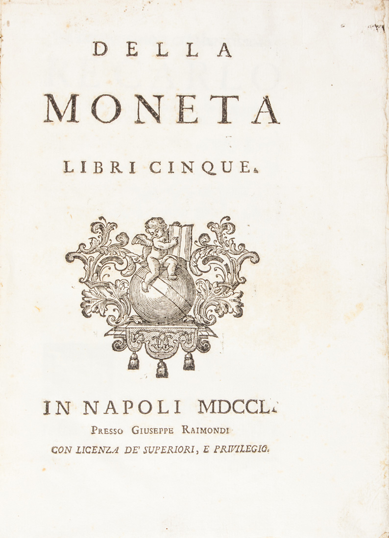 Galiani Ferdinando, Della moneta libri cinque.In Napoli: Presso Giuseppe...