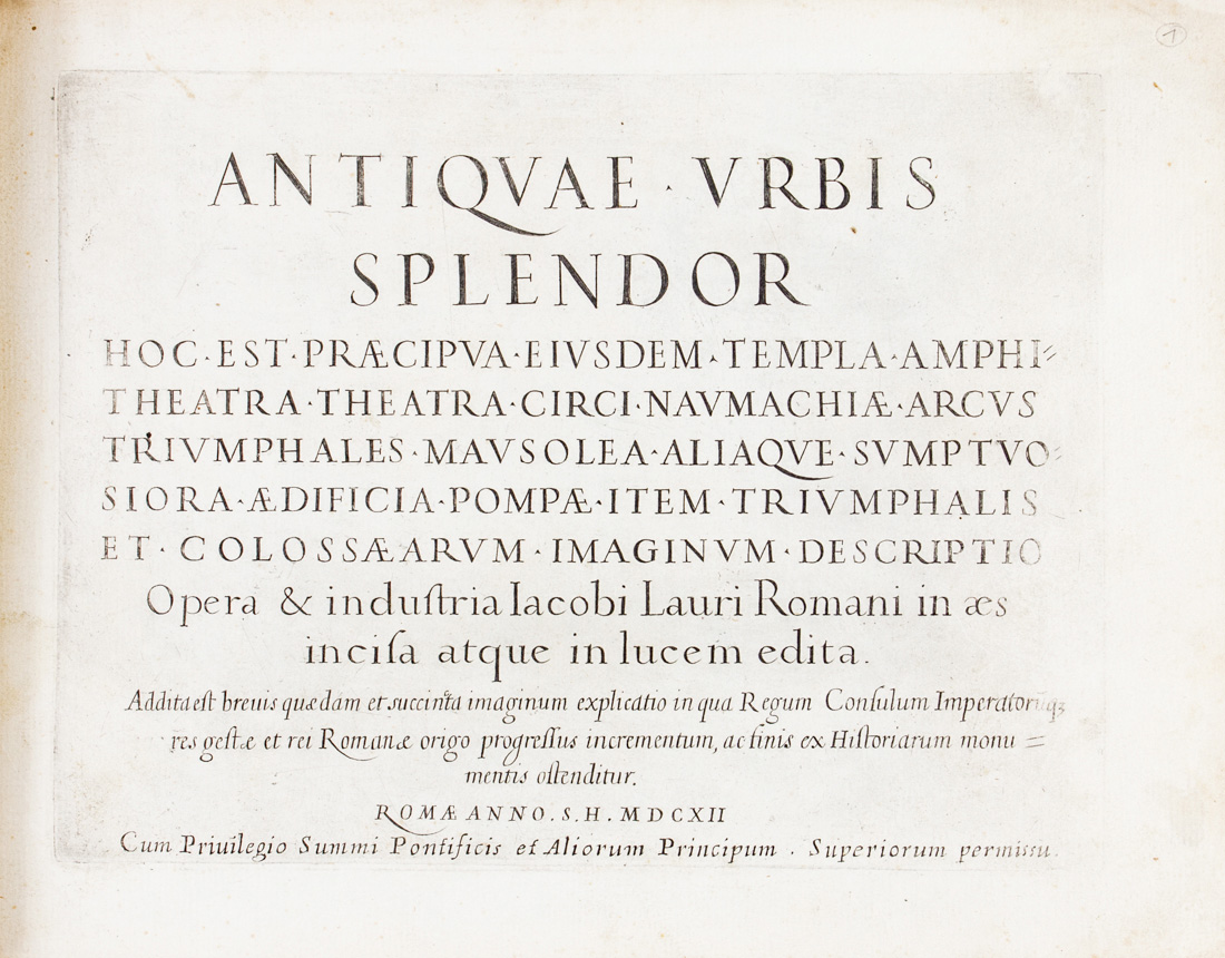 Lauro Giacomo, Antiquae Urbis splendor.Romae: S.e. [ma Vitale Mascardi],...