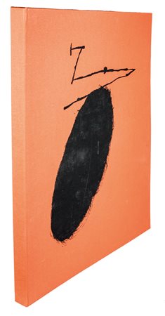 In-folio (mm 498x372). Carte 20 a fascicoli sciolti con 13 litografie in bianco e nero e a colori, di cui 8 a doppia pagina. Esemplare n. 865, uno dei 1000 firmati dall'Artista al colophon su una tiratura a 1120 copie. Cartella illustrata a colori, portfolio e custodia editoriali in piena tela arancione, un poco sporca. Conservato all'interno un disegno di autore ignoto su carta vergellata con filigrana CM Fabriano.