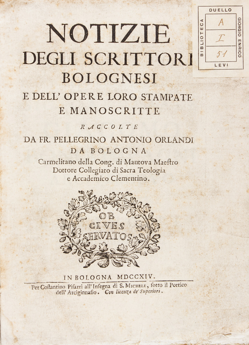Orlandi Pellegrino Antonio, Notizie degli scrittori Bolognesi e dell'opere loro stampate e manoscritte...