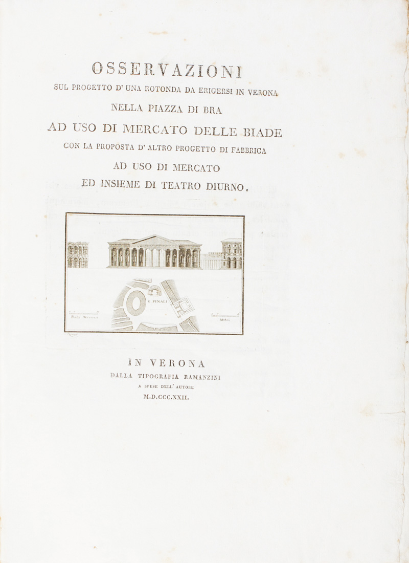 Pinali Gaetano, Osservazioni sul progetto d'una rotonda da erigersi in Verona nella piazza di Bra ad uso di mercato delle biade con la proposta d'altro progetto di fabbrica ad uso di mercato ed insieme di teatro diurno.