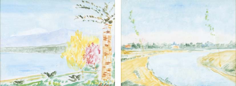 SEIBEZZI FIORAVANTE Venezia 1906 - 1975 Paesaggi lotto di due olii su cartone telato Misure: 18x24 cad. entrambi firmati e con dedica ad personam al retro