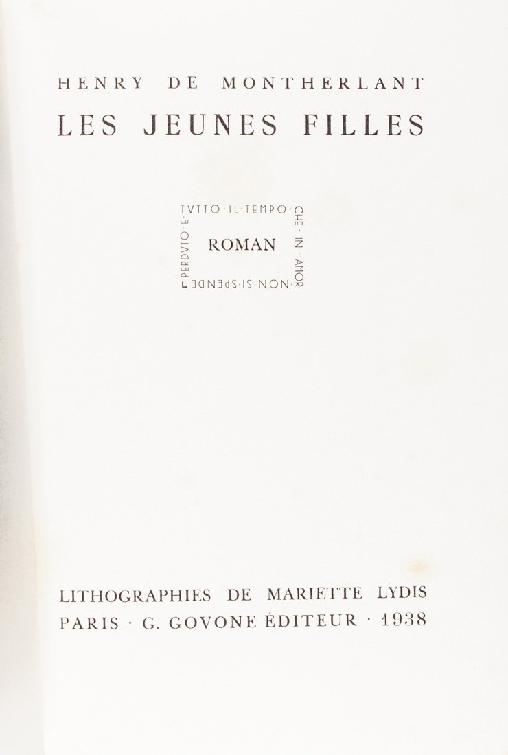 Montherlant Henry de, Les Jeunes Filles. Lithographies de Mariette Lydis.