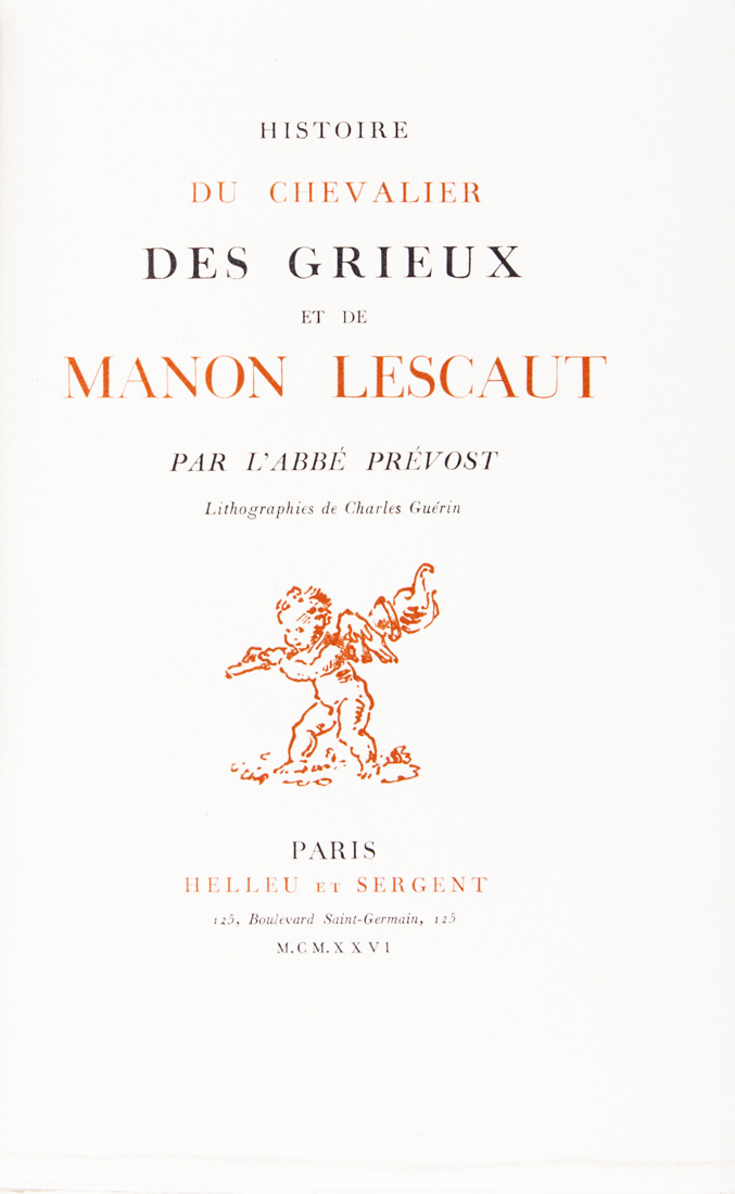 Prévost Antoine-François, Histoire du Chevalier des Grieux et de Manon Lescaut. Lithographies de Charles Guérin.