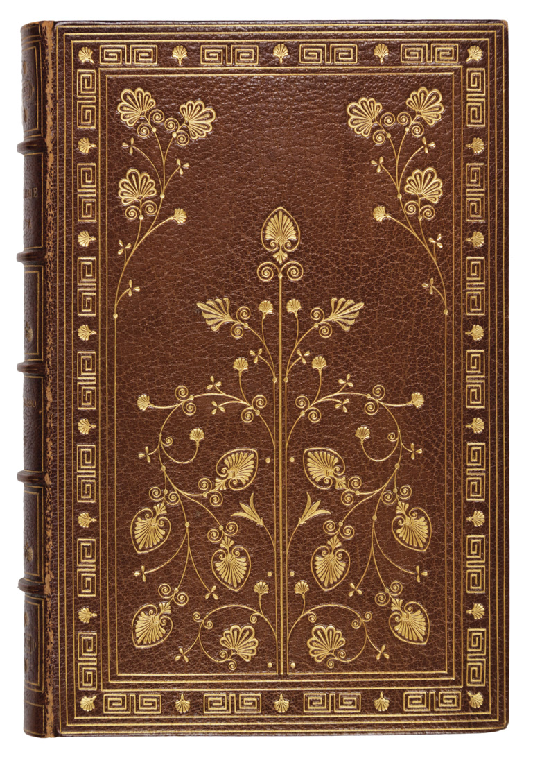 2 volumi in-8° (mm 217x136). Pagine [6], 331, 1 bianca; [4], 340. Con 2 ritratti (dell'Autore e del Disegnatore) incisi in rame in antiporta dei volumi, 1 Dedica calcografica al primo volume e 20 tavole incise in rame a piena pagina fuori testo. Vignette calcografiche ai frontespizi, testatine e finalini incisi in rame anche a piena pagina. Sporadiche fioriture ma bella copia. Graziosa legatura Art Nouveau in marocchino nocciola a grana media firmata Zaehnsdorf con elaborato disegno floreale impresso in oro ai piatti inquadrato da una cornice di greche e filetti; titoli e fregi floreali impressi in oro ai comparti del dorso a 5 nervi; sguardie in seta rossa. Minime spellature ai nervi e alle cerniere.(2)