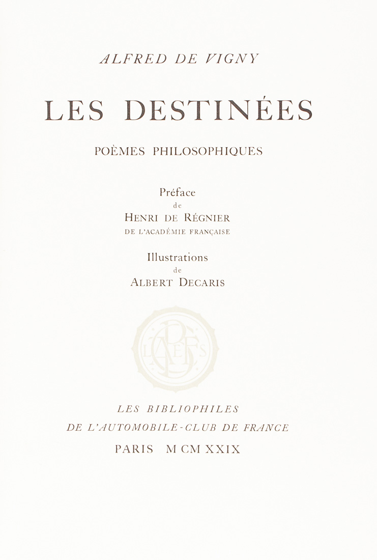 Vigny Alfred (de), Les destinées. Poèmes philosophiques [...]. Illustrations de Albert Decaris.