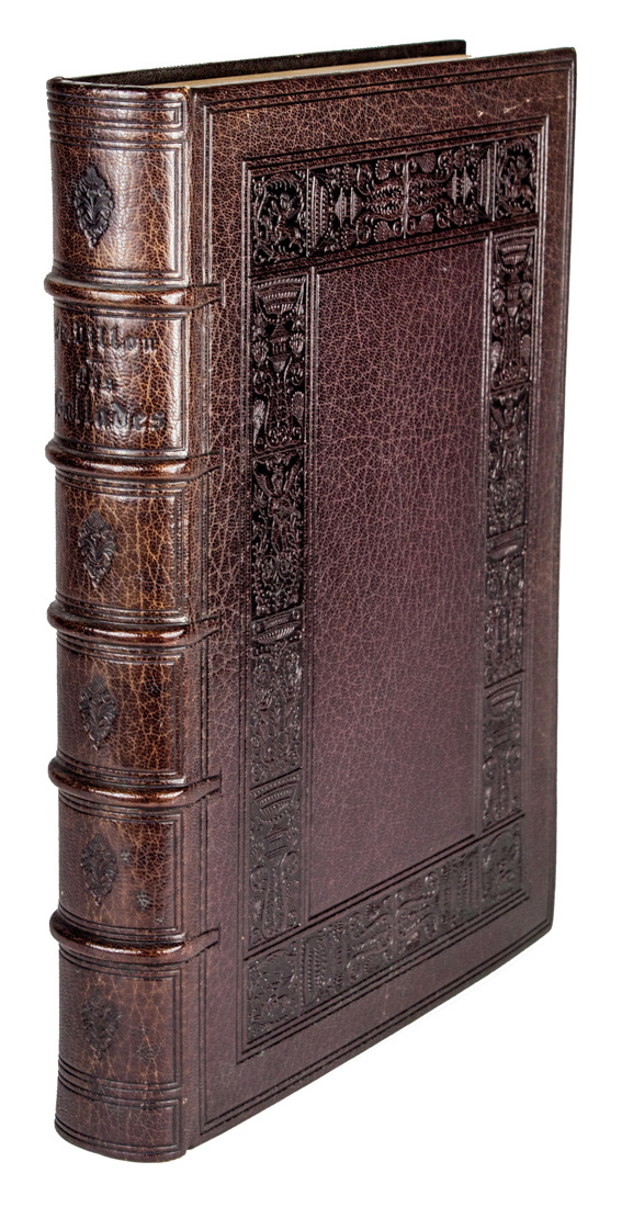 In-8° (mm 275x180). Pagine [8], 205, (3) con 70 incisioni in legno nel testo, delle quali una a piena pagina in 3 stati. Esemplare n. 33 su una tiratura complessiva di 350 copie, uno dei 25 Japon des manufactures impériales con due suites delle illustrazioni, su Japon e su Chine. Elegante legatura firmata Marius Michel in marocchino testa di moro con cornice di gusto neoclassico impressa a secco ai piatti e titoli sempre impressi a secco al dorso a 5 nervi, doublures in marocchino testa di moro e nocciola e sguardie in seta. Brossura editoriale figurata conservata all'interno.