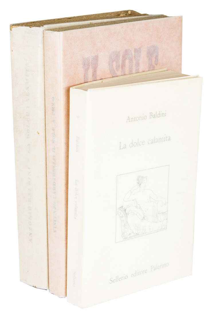 In-8° (mm 190x130). Pagine 292. Esemplare in barbe leggermente brunito, altrimenti ottime condizioni. Contiene un disegno di Giorgio Morandi e diverse illustrazioni. Brossura originale. SI AGGIUNGE: Cardarelli Vincenzo, Il sole a picco. Bologna: l'Italiano Editore, 1929. In-8° (mm 190x130). Pagine 162, [6] con 22 disegni di Giorgio Morandi. Esemplare n. 690 su una tiratura complessiva di 1000 copie. SI AGGIUNGE: Baldini Antonio, La dolce calamita. Palermo: Sellerio Editore, 1992. In-16° (mm 155x105). Pagine 256 con numerose incisioni di Giorgio Morandi.(3)
