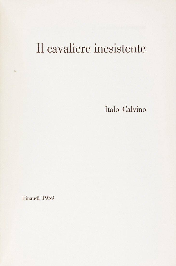 Calvino Italo, Il cavaliere inesistente.Torino: Einaudi, 1959.In-16°...