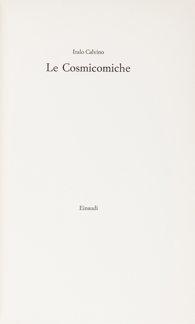 Calvino Italo, Le cosmicomiche.Torino: Einaudi, 1965.In-8° (mm 220x135)....