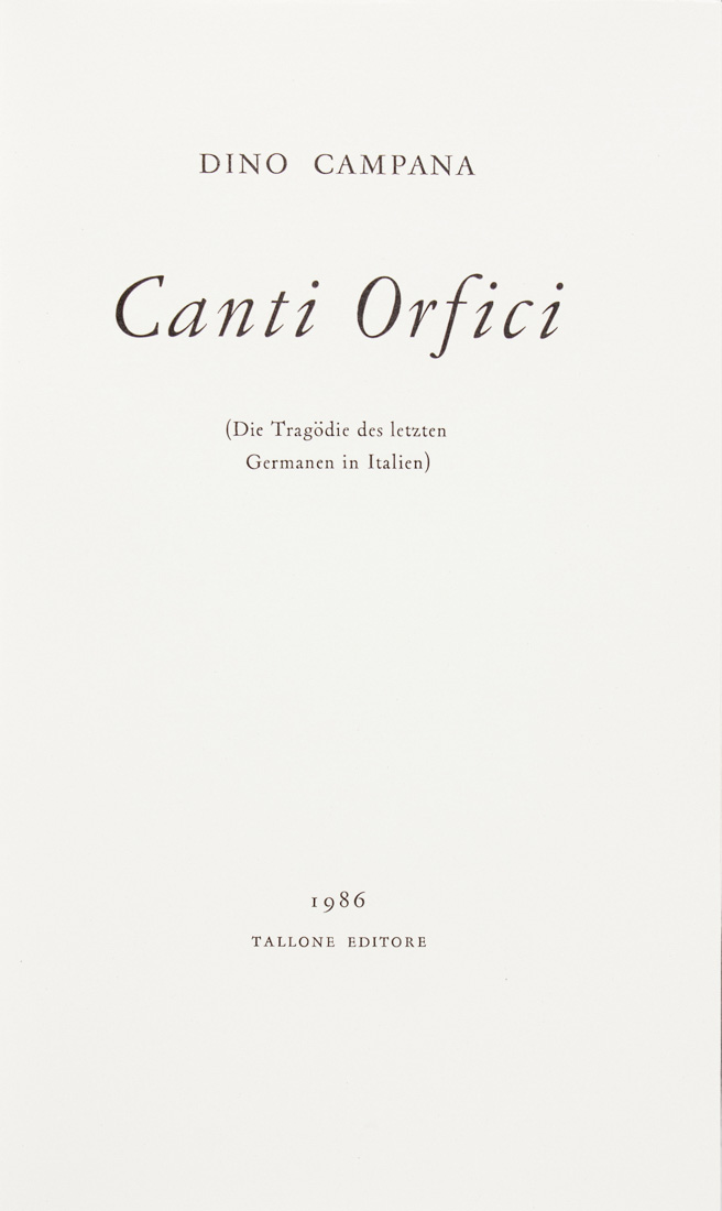 Campana Dino, Canti Orfici.Alpignano: Alberto Tallone, 1986.In-16° (mm...