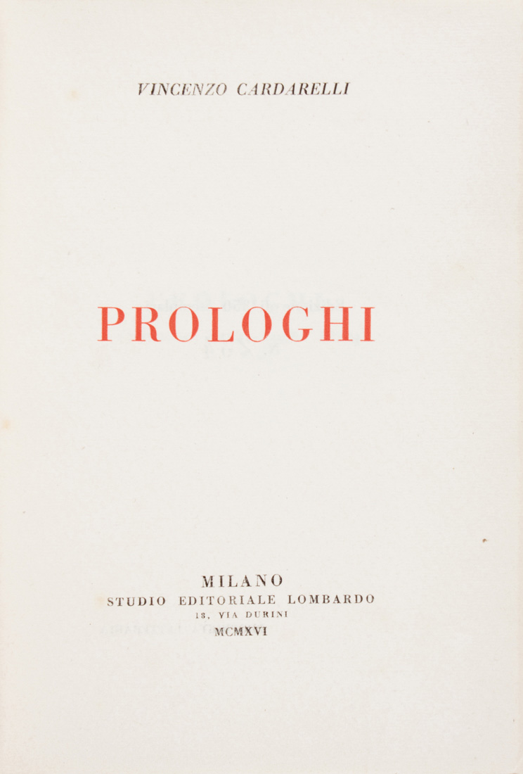 Cardarelli Vincenzo, Prologhi.Milano: Studio Editoriale Lombardo,...