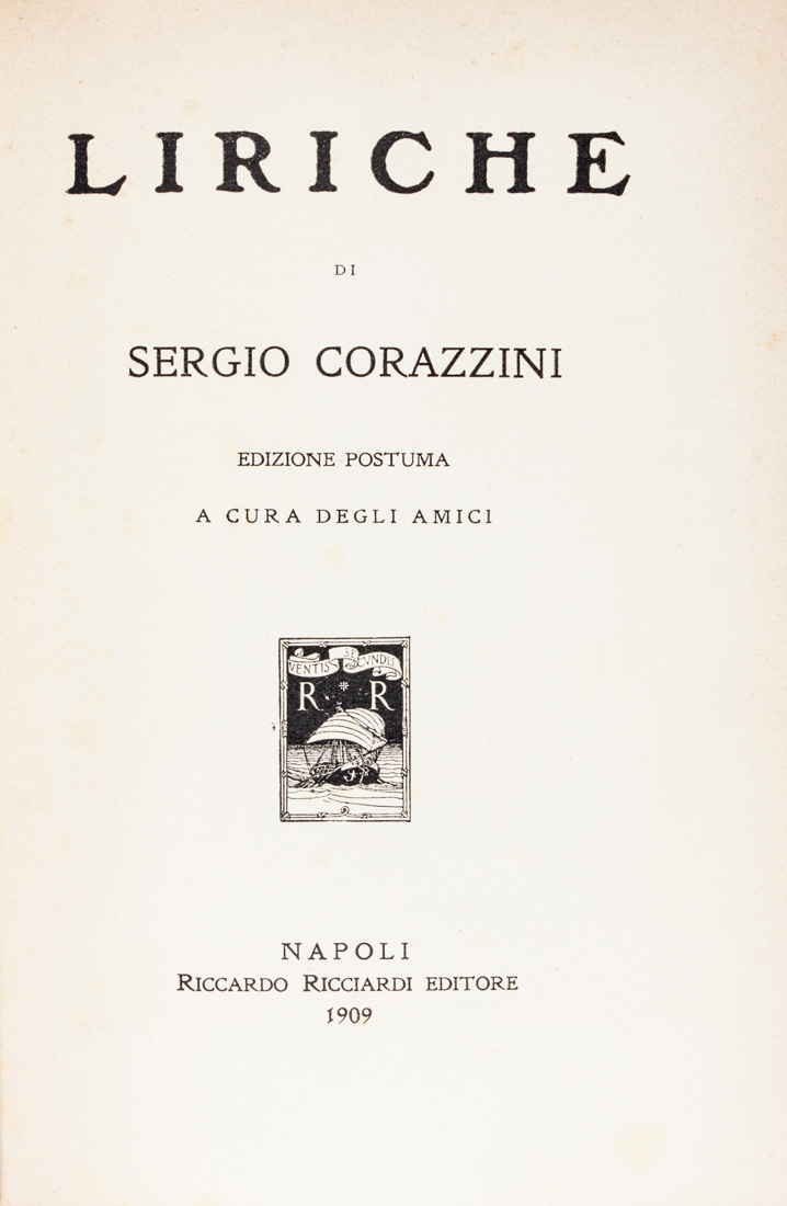 Corazzini Sergio, Liriche.Napoli: Ricciardi, 1909.In-8° (mm 190x130)....
