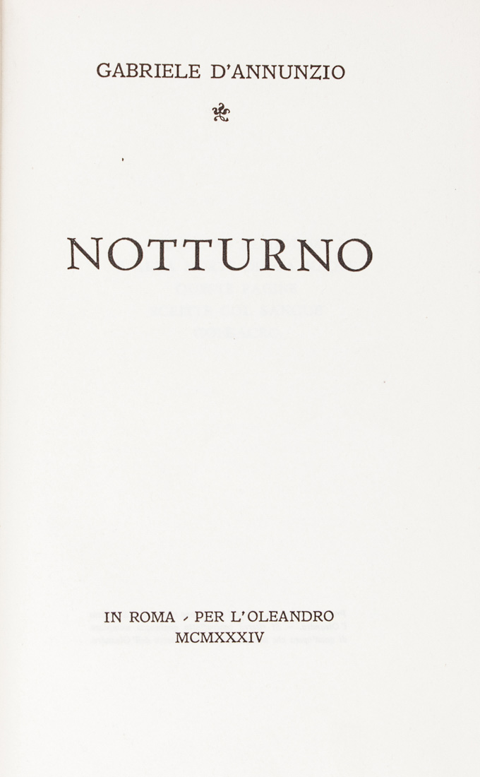 D'Annunzio Gabriele, Notturno.Roma: Edizione dell'Oleandro, 1934.In-8°...