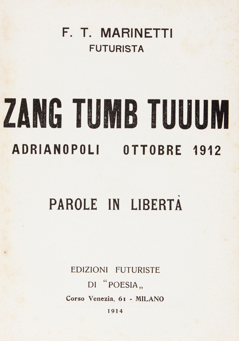 Marinetti Filippo Tommaso, Zang Tumb Tuuum. Adrianopoli ottobre 1912. Parole in libertà.