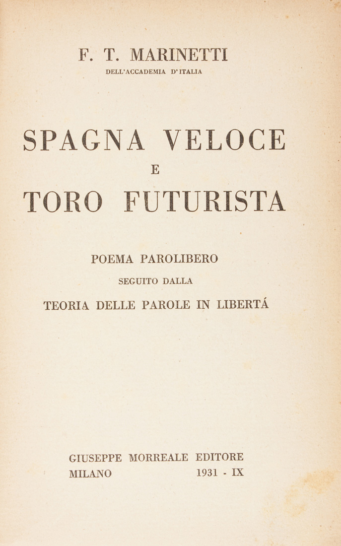 Marinetti Filippo Tommaso, Spagna veloce e toro futurista.Milano: Morreale,...