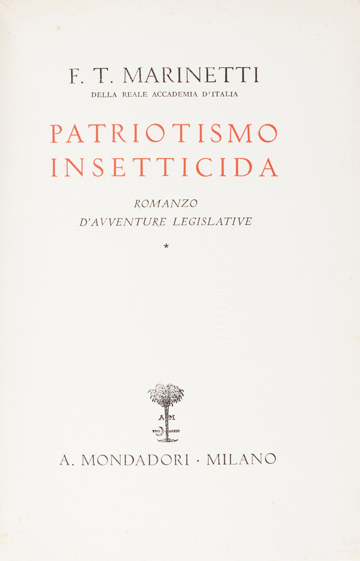 Lotto 616 | Marinetti Filippo Tommaso, Patriotismo insetticida. Romanzo d'avventure...