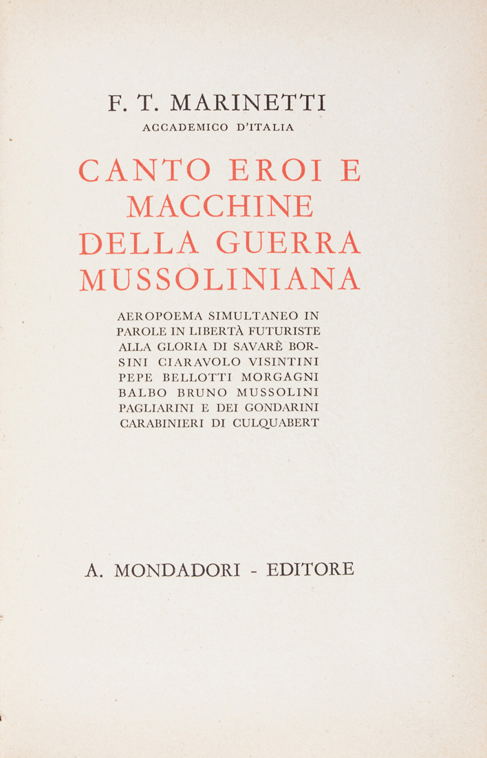 Marinetti Filippo Tommaso, Canto eroi e macchine della guerra mussoliniana.