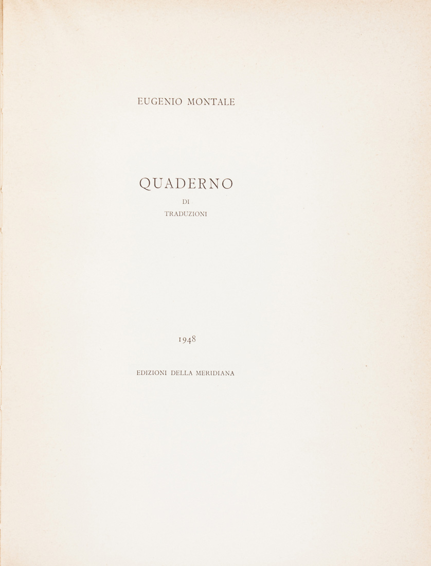 Montale Eugenio, Quaderno di traduzioni.Milano: Edizioni della Meridiana,...
