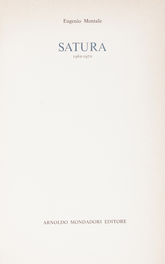 Montale Eugenio, Satura.Milano: Mondadori, 1971.In-8° (mm 210x130)....