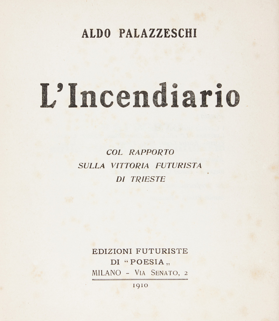 Palazzeschi Aldo, L'Incendiario. Col rapporto sulla vittoria futurista di Trieste.