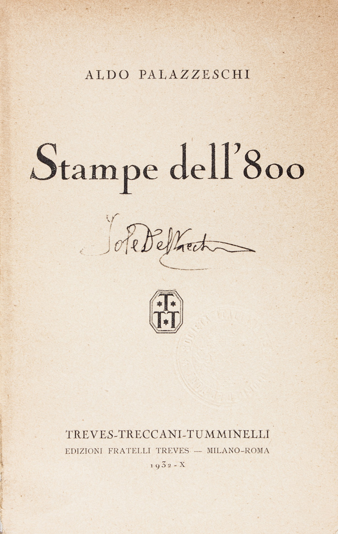 Lotto 639 | Palazzeschi Aldo, Stampe dell'800.Milano: Treves, 1932.In-8° (mm...