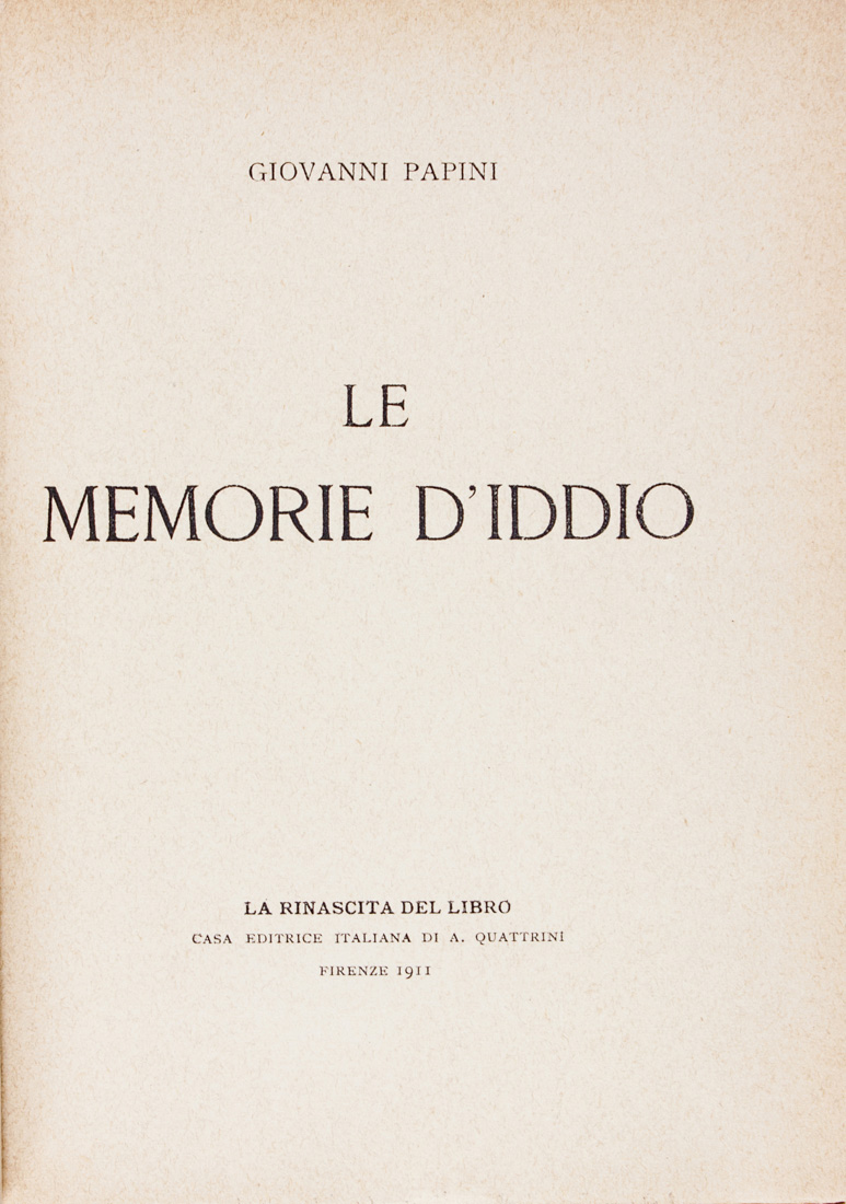Papini Giovanni, Le memorie d'Iddio.Firenze: la Rinascita del Libro,...