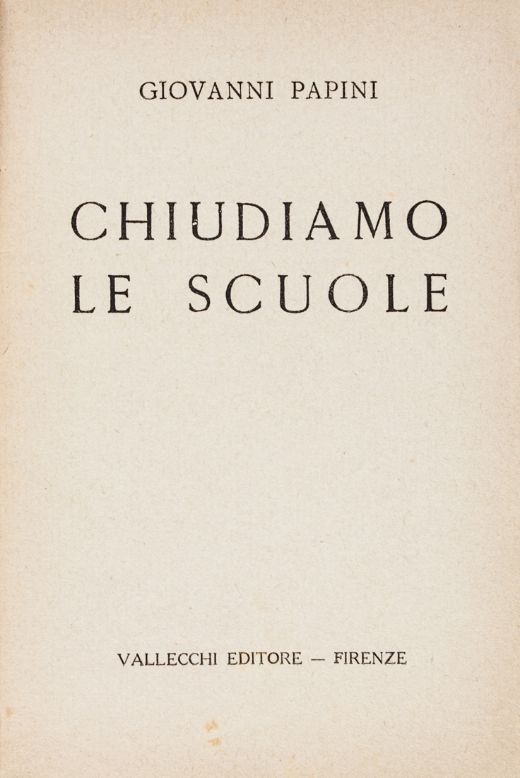 Papini Giovanni, Chiudiamo le scuole.In Firenze: Vallecchi, 1919.In-8°...