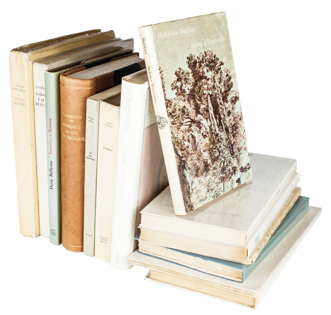 In-8° (mm 190x125). Pagine 119. Esemplare in barbe. Qualche fioritura e leggermente allentato. Brossura editoriale con alcune macchie e abrasioni ai piatti e minimi strappi al dorso. SI AGGIUNGONO: Id., Storia nostra. Milano: Mondadori, 1941. Trilussa, Giove e le Bestie. Milano: Mondadori, 1932. Jandolo Augusto, Le memorie di un antiquario. Milano: Ceschina, 1938. Brocchi Virgilio, Le beffe di Olindo. Milano: Mondadori, 1942. Alianello Carlo, L'Alfiere. Torino: Einaudi, 1942. Onofri Fabrizio, Via del maltempo. Torino: Einaudi, 1942. Socrate Mario, Poesie illustrate. Roma: Vettorini, 1950. Tecchi Bonaventura, Valentina Velier. Milano: Bompiani, 1950. Ottieri Ottiero, Memorie dell'Incoscienza. Torino: Einaudi, 1954. Baldini Gabriele, Selva e Torrente. Torino: Einaudi, 1970. Bellezza Dario, Invettive e licenze. Milano: Garzanti, 1971. Parazzoli Ferruccio, Il giro del mondo. Milano: Bompiani, 1977. Montefoschi Giorgio, L'amore borghese. Milano: Rizzoli, 1978. (13)
