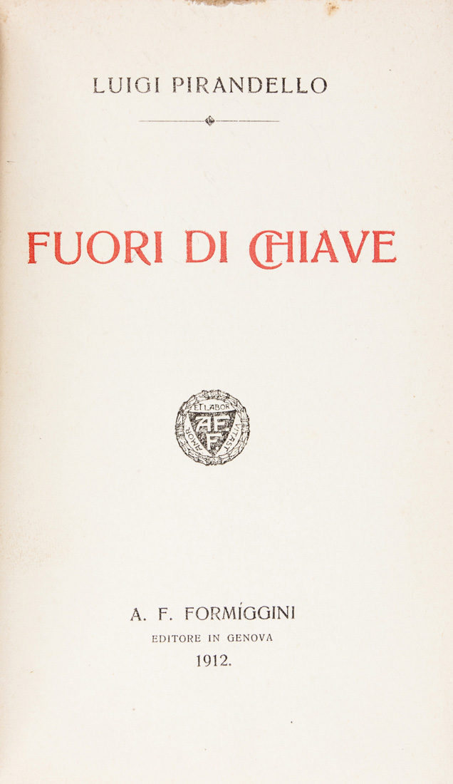 Pirandello Luigi, Fuori di chiave.Genova: Formiggini, 1912.In-6° (mm...