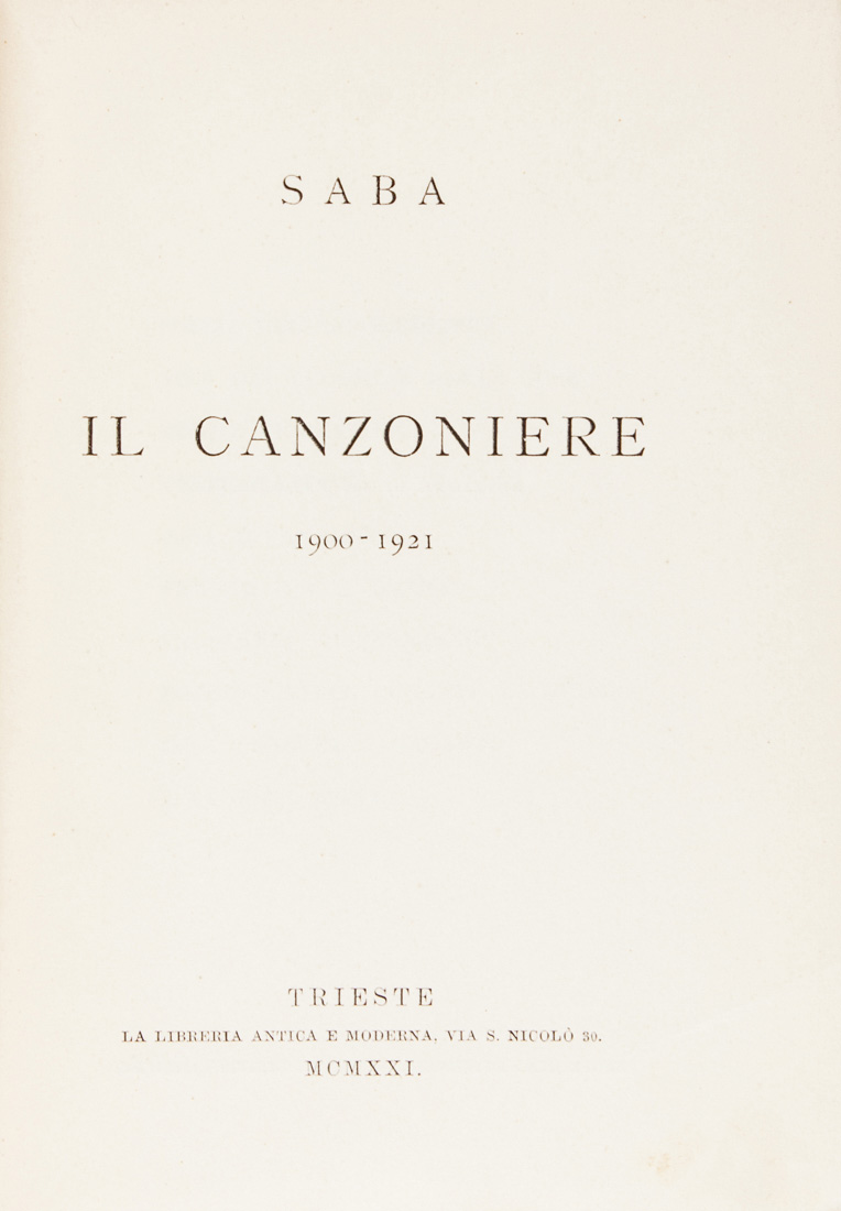 Saba Umberto, Il canzoniere 1900-1921.Trieste: La Libreria antica e moderna,...