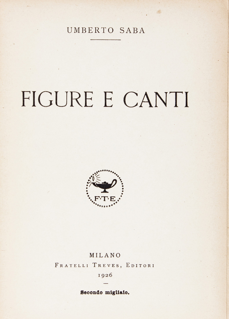 Lotto 679 | Saba Umberto, Figure e canti.Milano: Treves, 1926.In-8° (mm 190x135)....