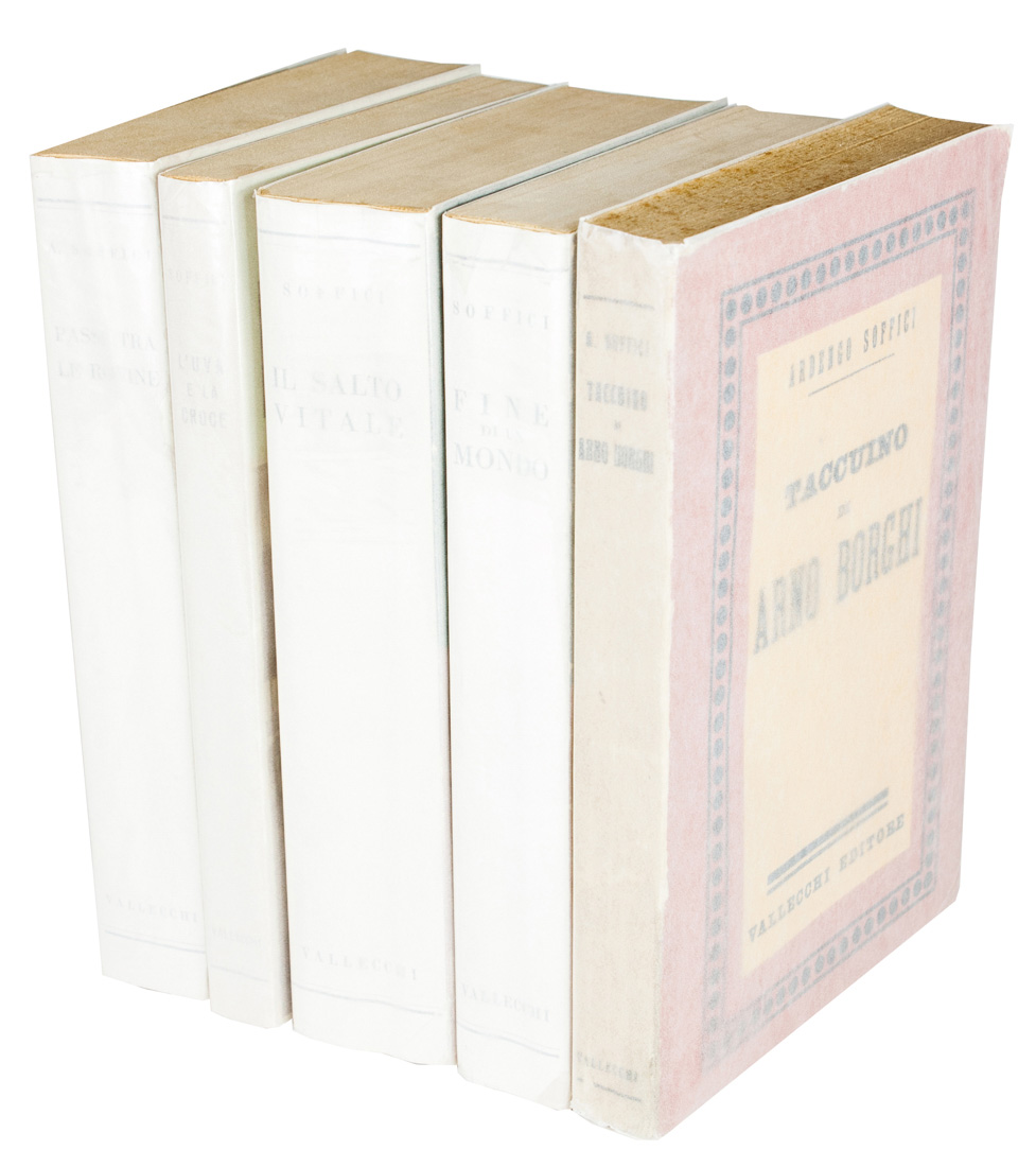In-16° grande (mm 185x130). Pagine 320. Esemplare con sporadiche fioriture, ma in ottimo stato di conservazione. Brossura editoriale con titoli al dorso e al piatto anteriore. Nota manoscritta alla prima carta bianca. SI AGGIUNGONO: Id., L'uva e la croce. Firenze: Vallecchi, 1951. Passi tra le rovine. Firenze: Vallecchi, 1952. Il salto vitale. Firenze: Vallecchi, 1954. Fine di un mondo. Firenze: Vallecchi, 1955.(5)