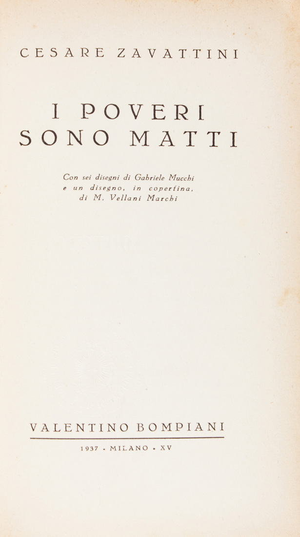 Zavattini Cesare, I poveri sono matti.Milano: Bompiani, 1937.In-8° (mm...