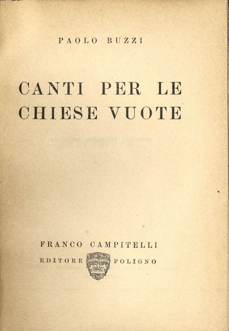 - La raccolta comprende: Canti per le chiese vuote. Foligno, Campitelli 1930 - Avventure dei solstizi e degli equinozi. Milano, Morreale 1934 (dedica danneggiata) - Selecta 1898-1954. A cura di estimatori milanesi 1955.(3)