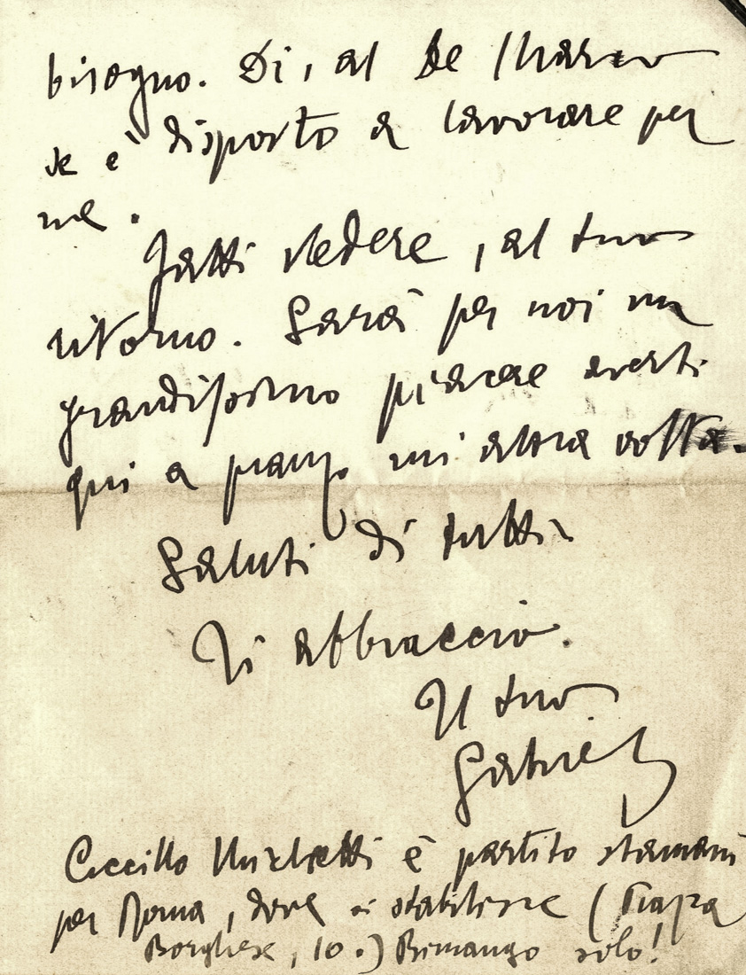 D'Annunzio Gabriele, Lettera autografa firmata inviata a Nicolino.