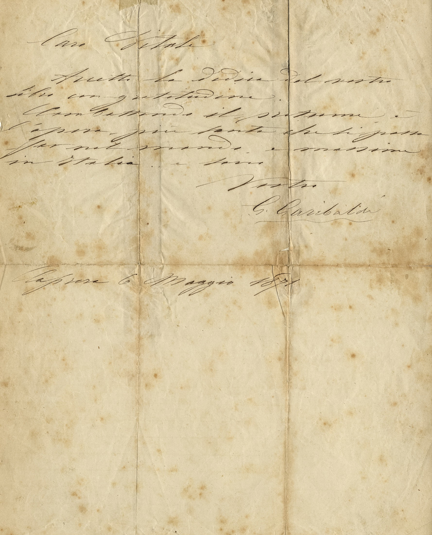 Garibaldi Giuseppe, Breve lettera con firma autografa.Datata 6 maggio 1871,...